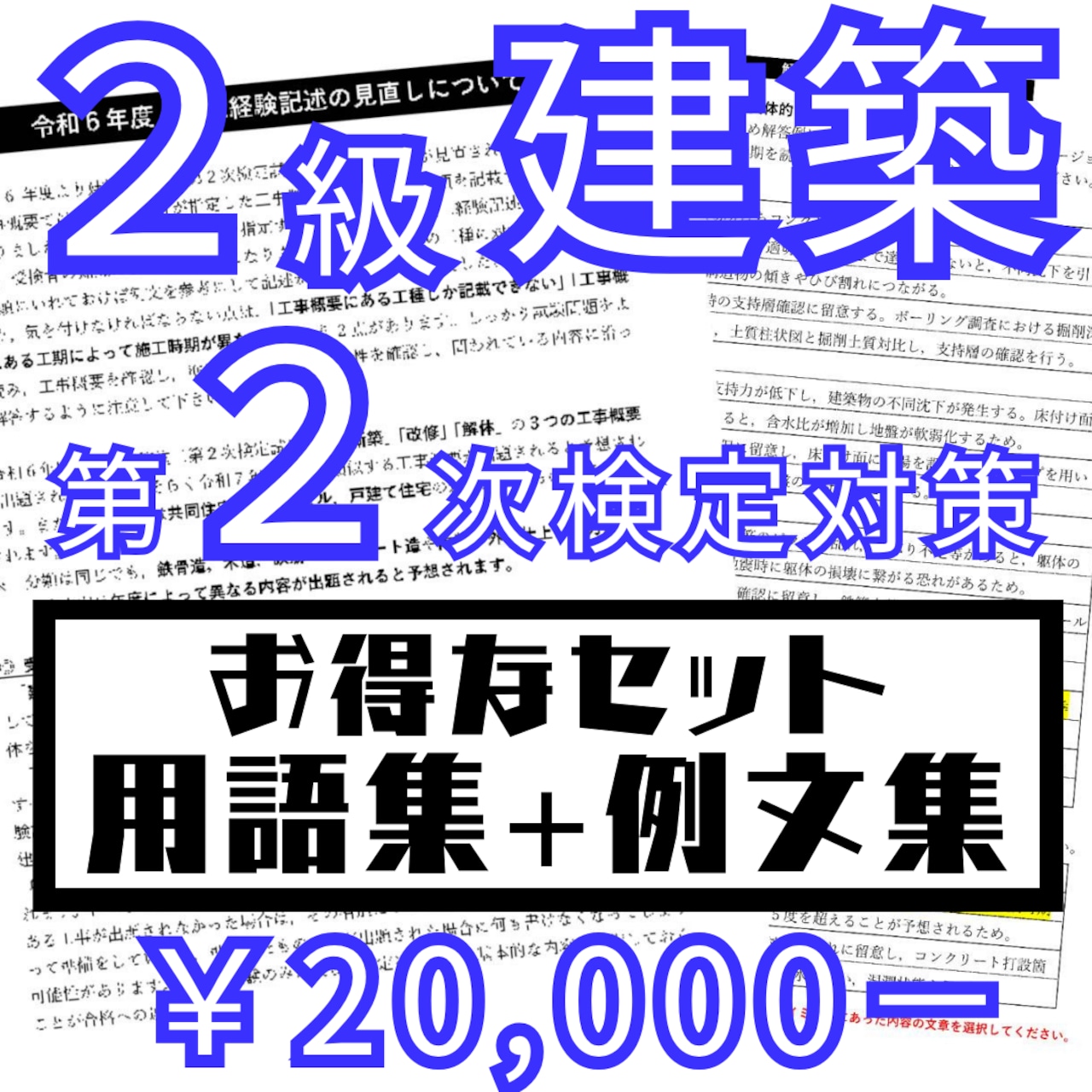 本商品は、ダウンロード商品で郵送は行いません。また添削は行いませんのでご了承ください。12級建築施工は第1次建託策模擬試験と、第2次検定試験対策の用語集のみ,記述例文集のみの単品商品と用語集+例文集のセット商品がございます。(第2次検定の模擬試験はございません)購入後のキャンセル変更はできませんので、お間違えのないようご購入下さい。