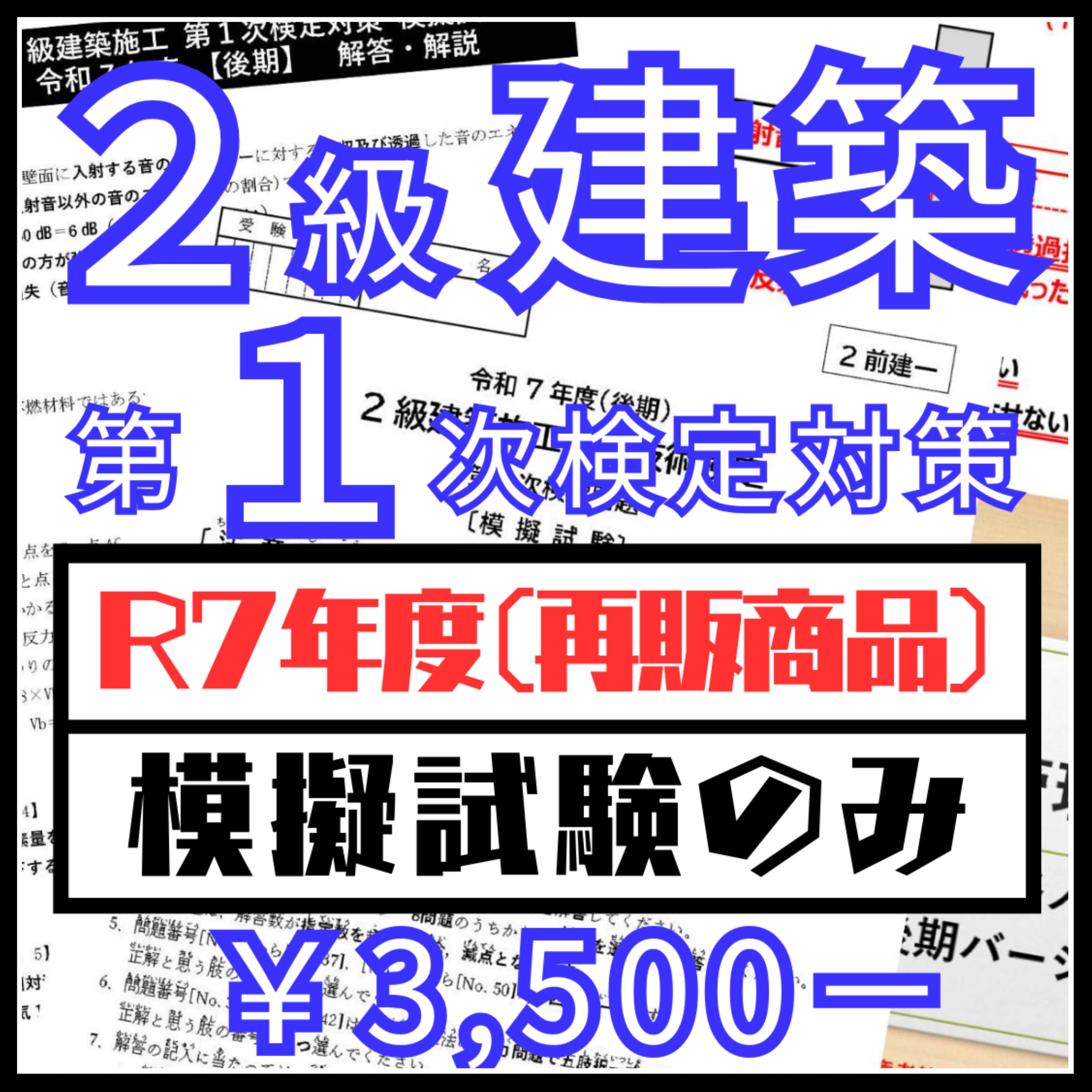 本商品は、ダウンロード商品で郵送は行いません。また採点は行いませんのでご了承ください。購入後のキャンセル変更はできません。似た商品名がありますので[解説動画付き]⇔[無し],[1級]⇔[2級],[土木施工]⇔[建築施工],[1次対策]⇔[2次対策]お間違えのないようご購入下さい。